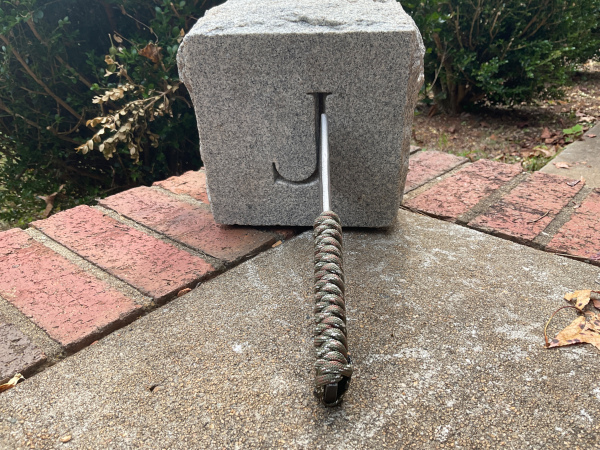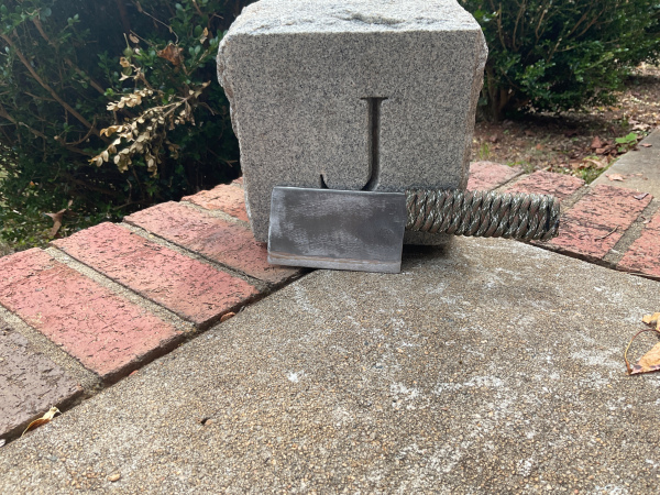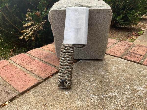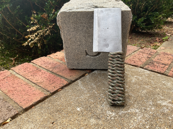 This cleaver is made out of a vehicle leaf spring. I have done my best to ensure that it is free from any contaminants. It has a paracord wrapped handle for added grip. It's overall length is 8". The blade is 4" long and 2 & 3/8" wide. The handle is 4" long and 1 & 1/4" wide. As with all my knives, it will come sharpened and exactly as pictured. Thank you for looking!