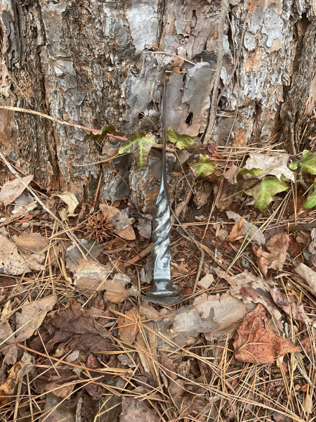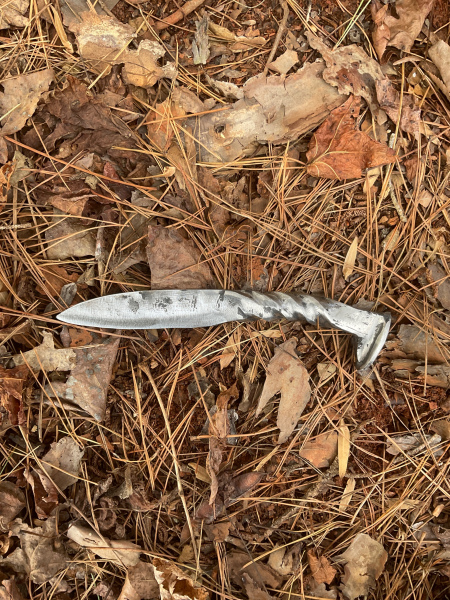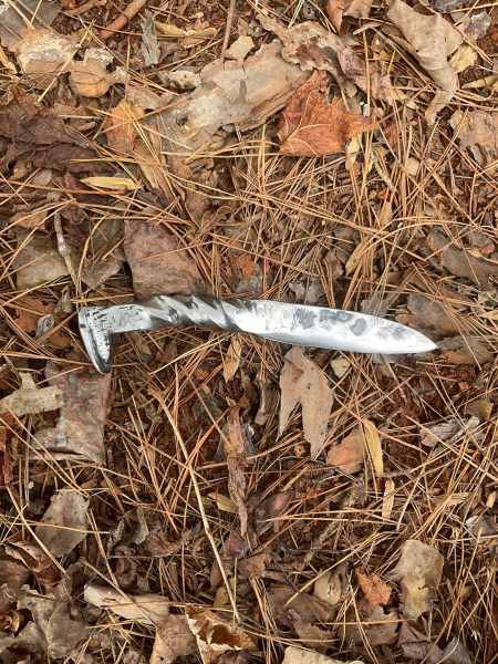 Another unique railroad spike knife! I put an arc in the handle so you are able to control your cuts with more precision. The overall length of the knife is 8 inches. The blade is 4" long and 1" wide. The handle is 4" long and 7/8" wide. As with all my knives, it will come sharpened and exactly as pictured. Thank you for looking!
